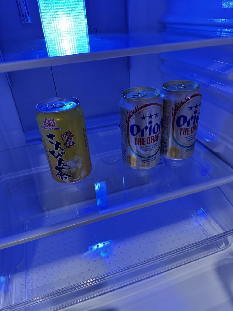 冷蔵庫にはウェルカムドリンクとしてオリオンビールさんぴん茶が、