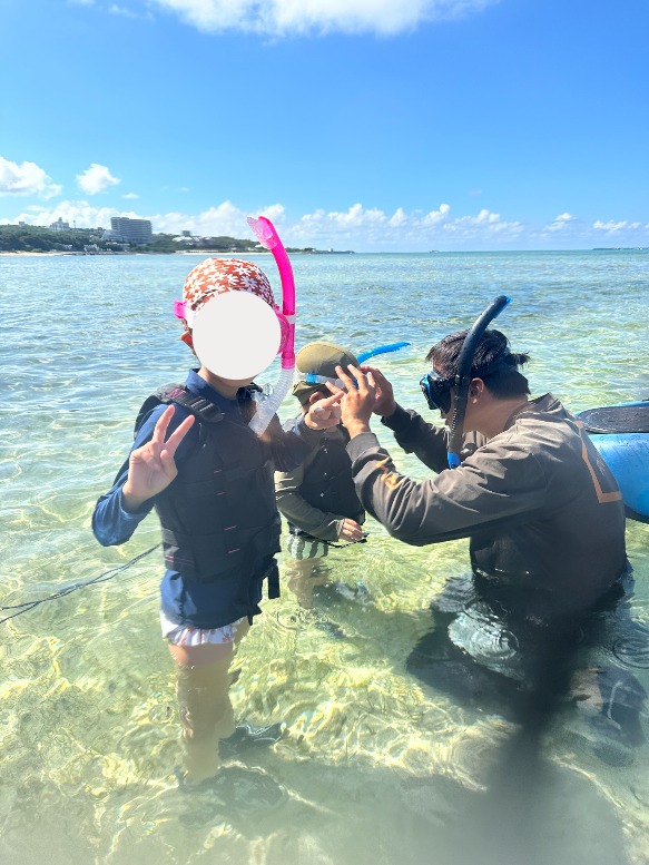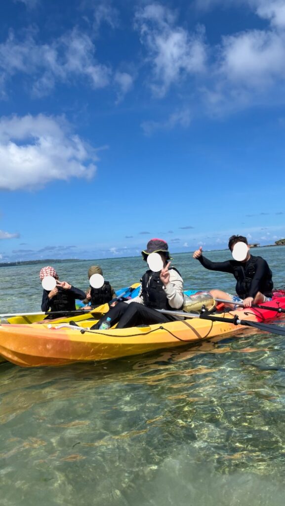 家族全員初シュノーケル、カヤックもほぼみんな初めての状態でしたが、最初浅瀬でシュノーケルの練習もしていただき、子供たちにも優しくレクチャーしてもらえて、すぐできるようになりました!(普段スイミング習ってる成果がここで発揮されました…(笑))