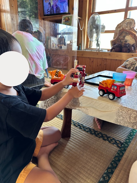 乗り継ぎするから、おもちゃ1人2個ずつになった😂