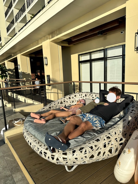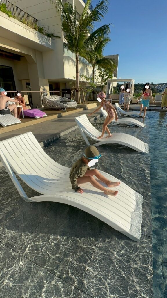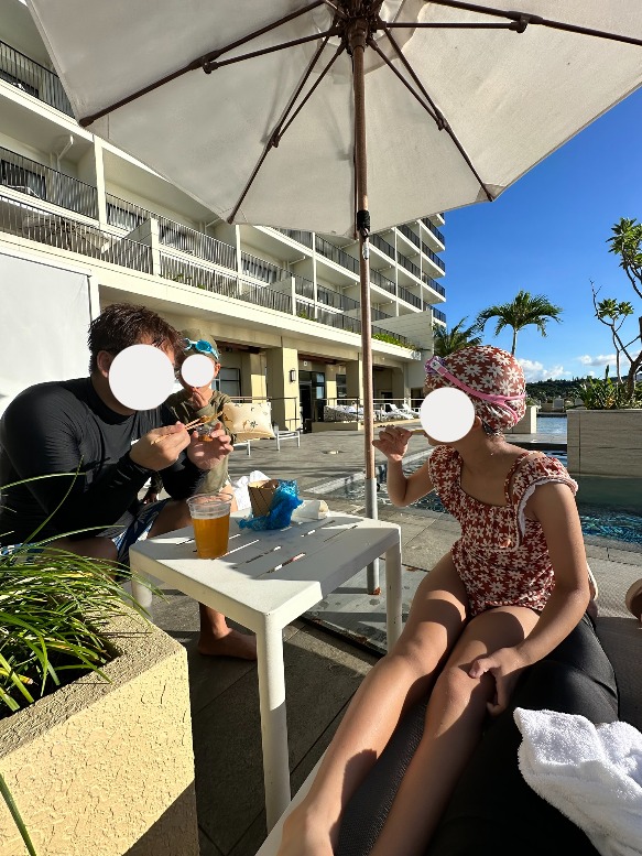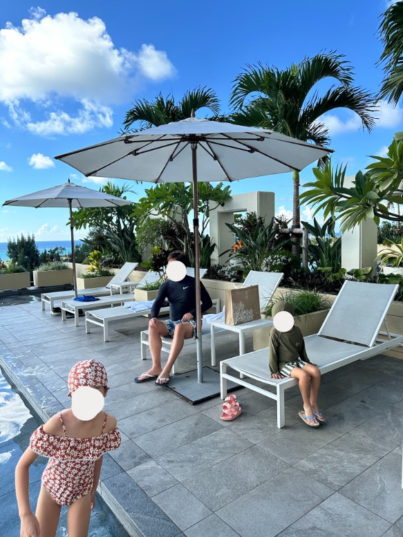 エメラルドビーチと水着で行き来OKだけど、我が家はプールで満足して結局海行かず(笑)