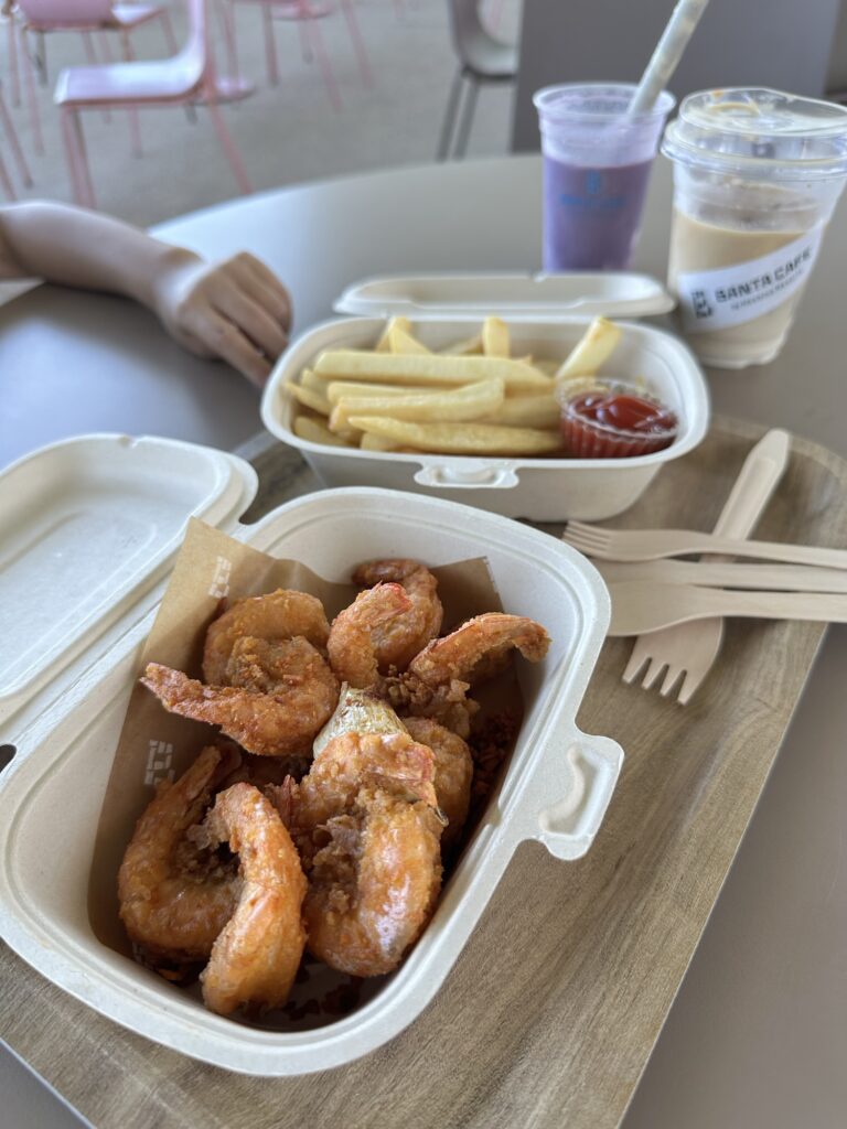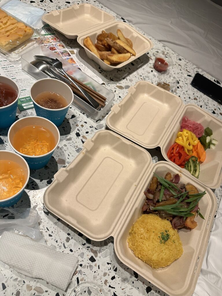 部屋へ戻って、またお腹すいちゃって、一階のお店のテイクアウト頼んで、部屋で食べた!