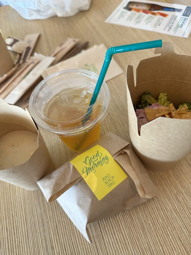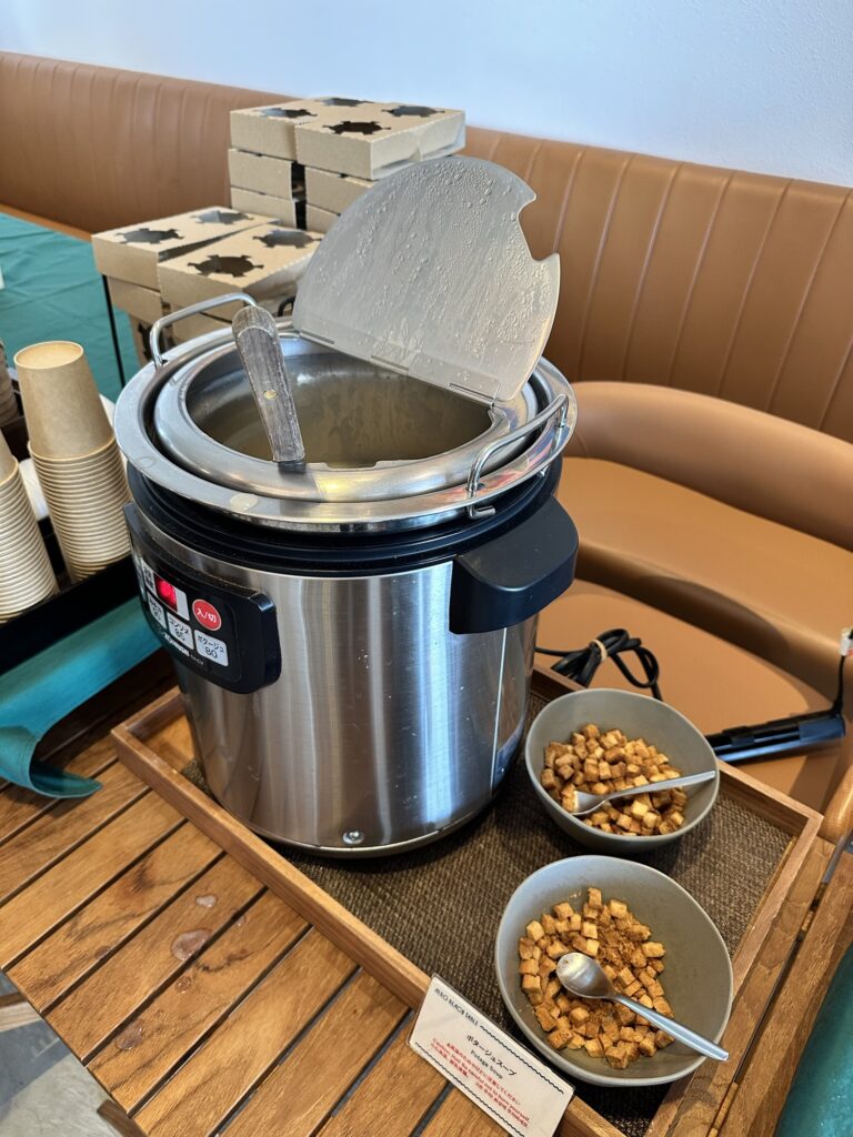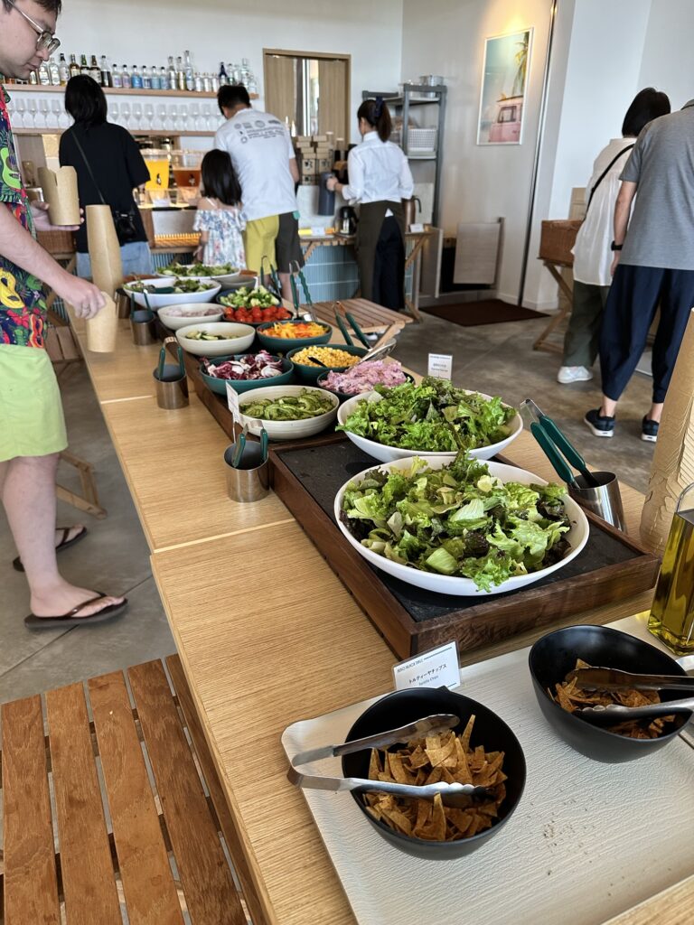 メインを3つの中から1つ選んで、あとは、サラダやヨーグルト、スコーンやスープを自分で取っていくスタイル🧺お部屋に置いてくれてるこのかごバッグを持って、どんどん入れていく感じ🎵めっちゃ楽しい!